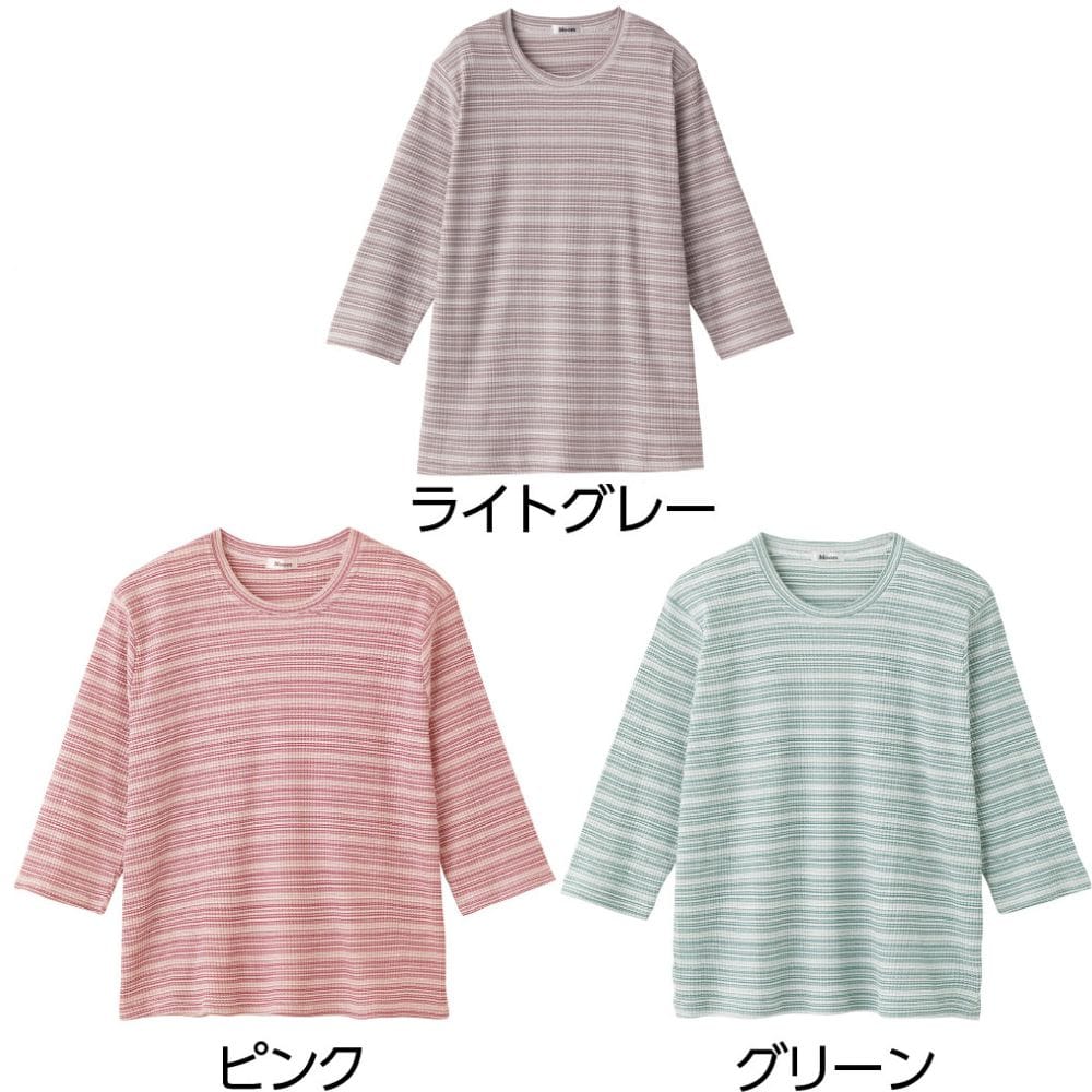 7分袖ピケボーダーTシャツ(婦人)