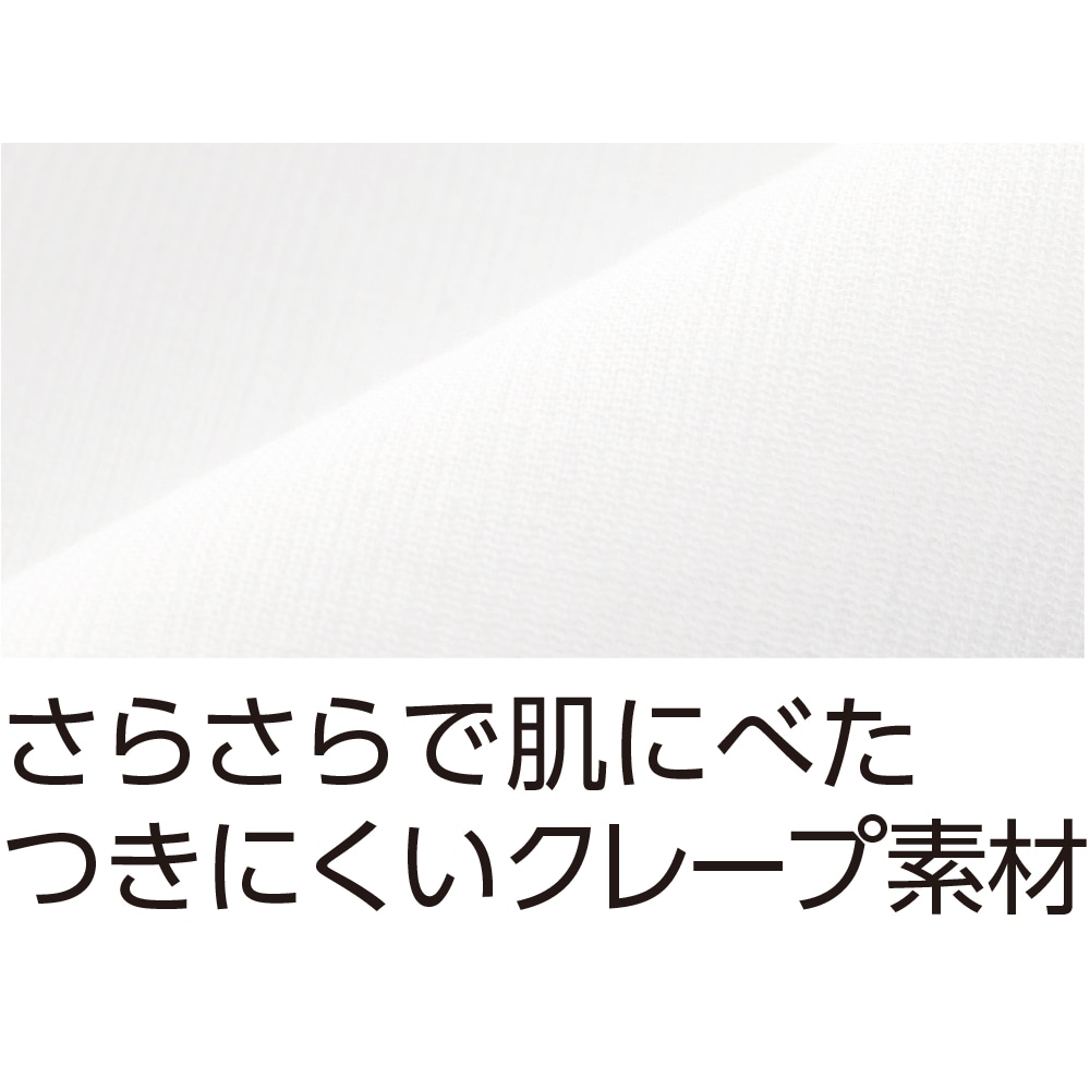 ◆ クレープ素材でさらさら ◆肌に優しい綿100%素材を使用。【吸水速乾・抗菌防臭】清涼感があり、汗をかいてもすぐにサラッとした感覚です。【ワンタッチテープ】ボタンが苦手な方でも片手で着脱できるワンタッチテープです。衿の垂れ下がりを防止します。※接着力維持のため、洗濯の際はワンタッチテープを留めて洗ってください。【後ろ身頃長め】後ろ身頃が長めになっていて前かがみでも背中が出にくいです。
