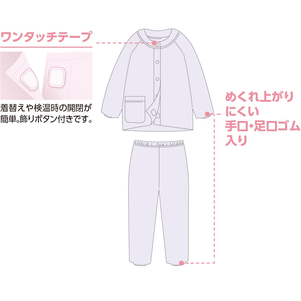 ケアファッションオンラインワンタッチ天竺パジャマ(婦人) | ユニバーサルファッションと介護衣料の通販