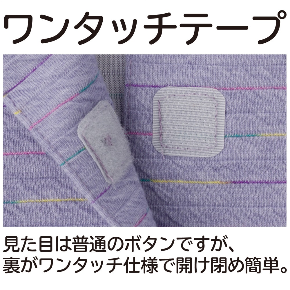 見た目は普通のボタンですが、裏がワンタッチテープで、開け閉めが簡単です。