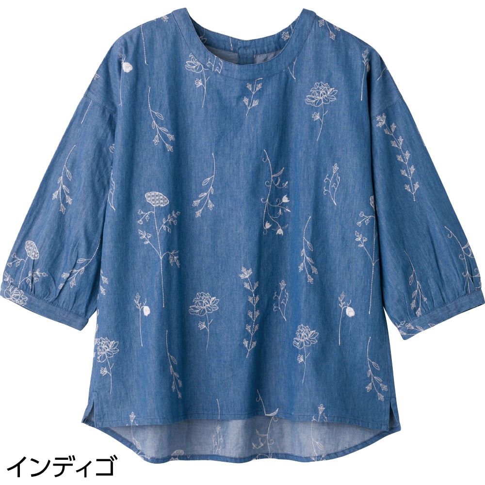 7分袖デニム刺繍Tブラウス(婦人)|ケアファッションオンライン