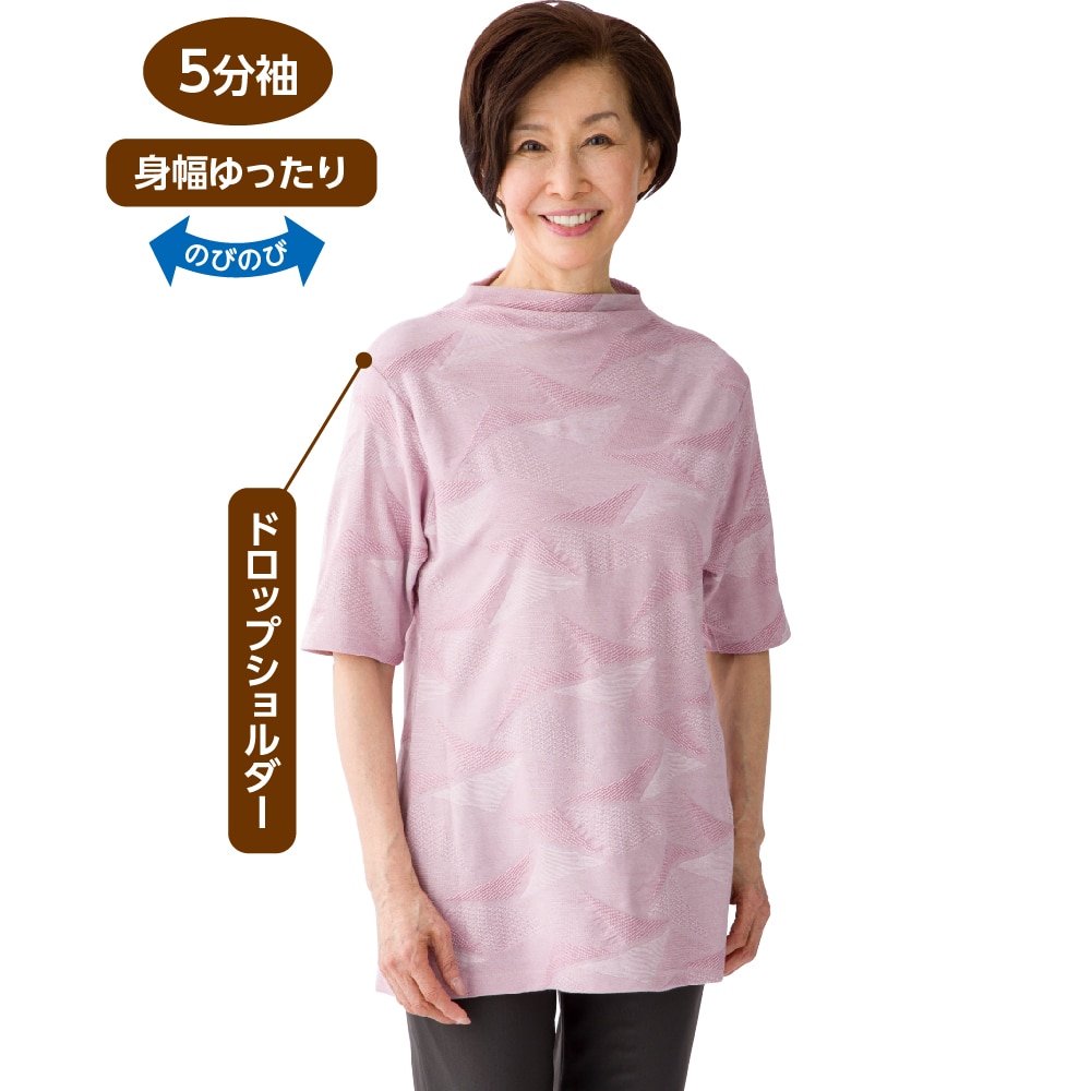 5分袖涼しや変形ジャカードチュニック(婦人)|ケアファッションオンライン