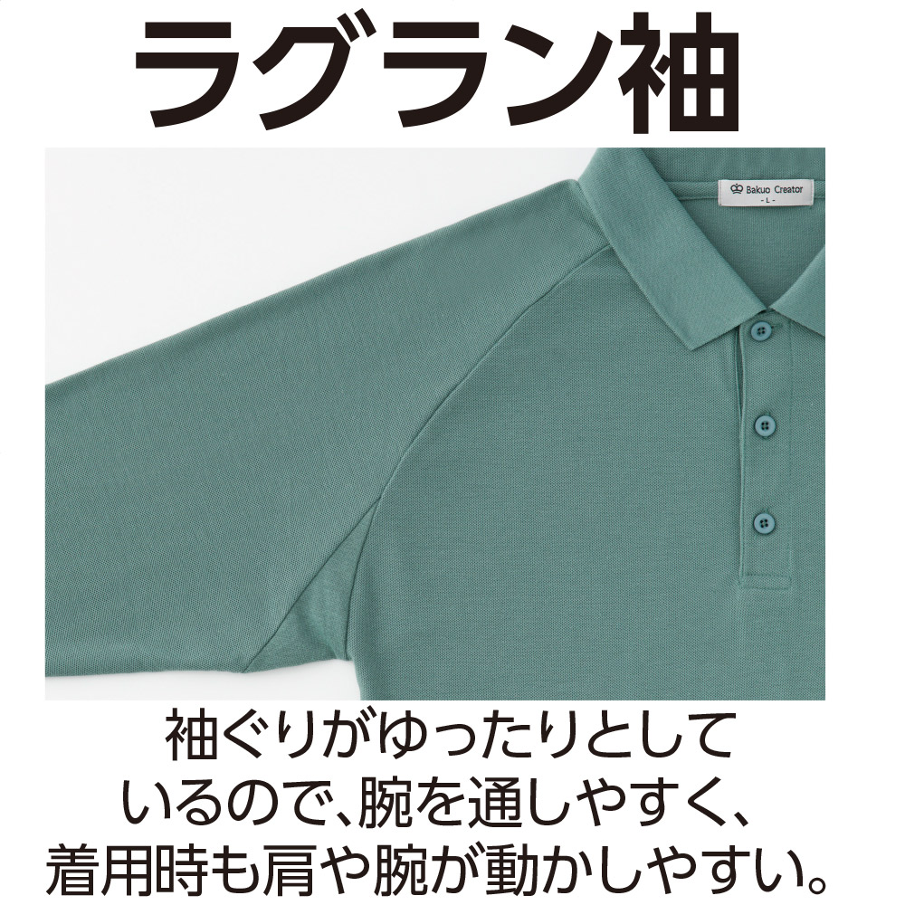 ラグラン袖&マチ付で動きやすい快適機能。