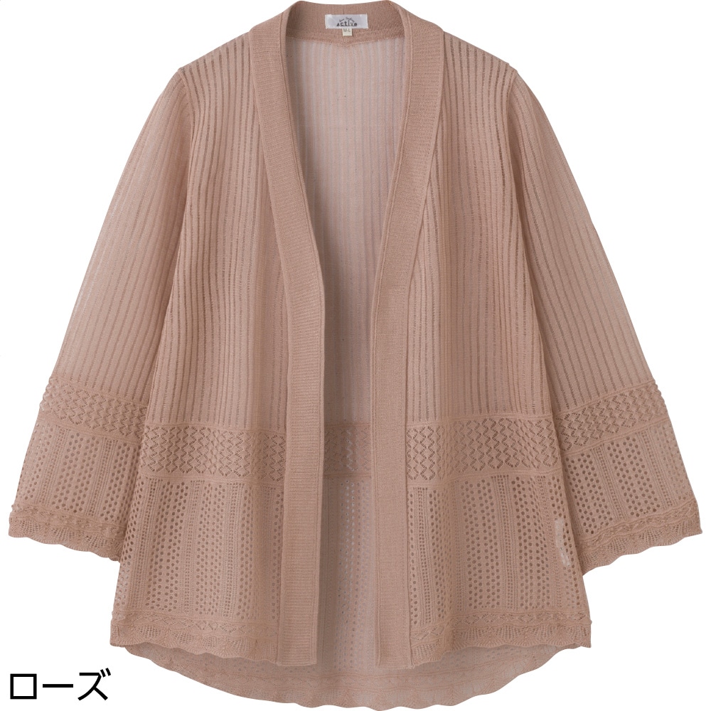 7分袖透かしダイヤ柄トッパーカーディガン(婦人)