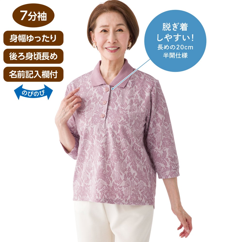 | 商品名 | 7分袖斜め釦ホールポロシャツ(婦人) |