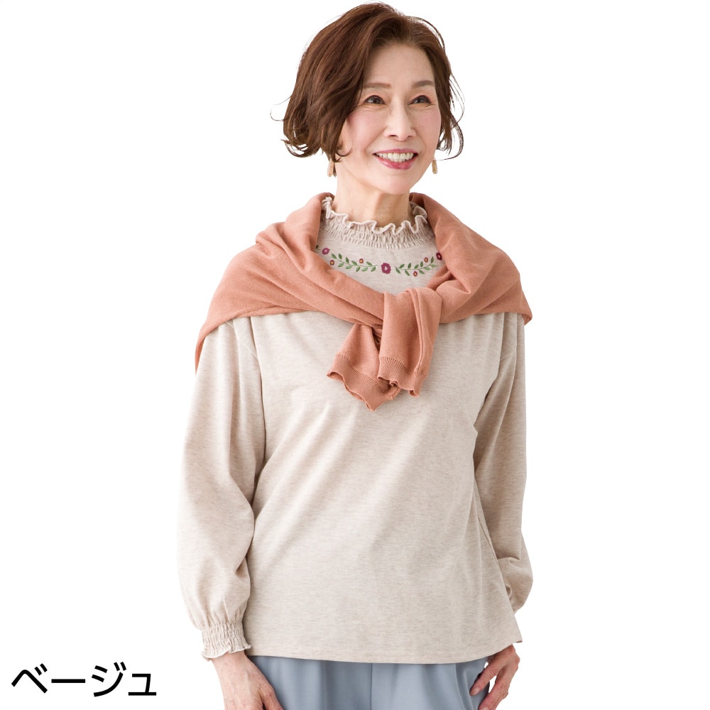 ケアファッションオンライン綿混衿袖シャーリングTシャツ(婦人) | ユニバーサルファッションと介護衣料の通販