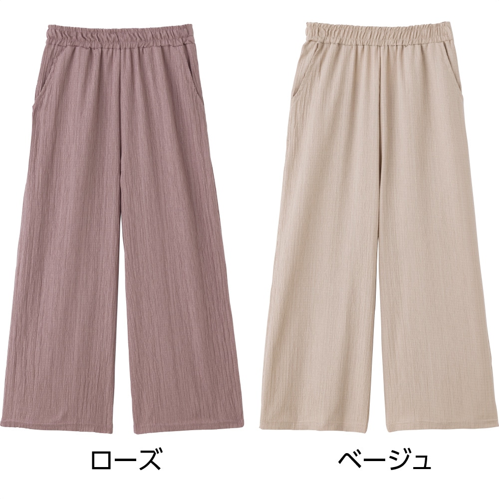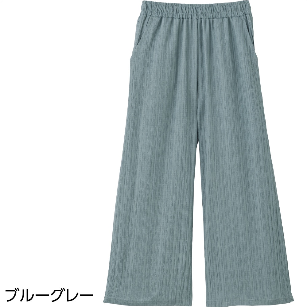 涼やかな楊柳素材と、ゆったりワイドな短め丈で足元も軽快に。