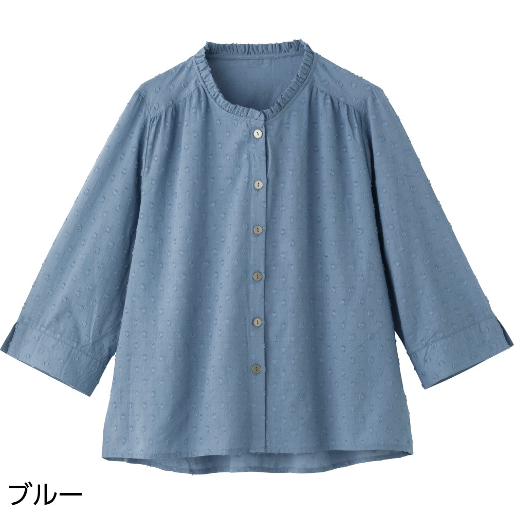 | 商品名 | 7分袖綿100%フリルネックブラウス(婦人) |