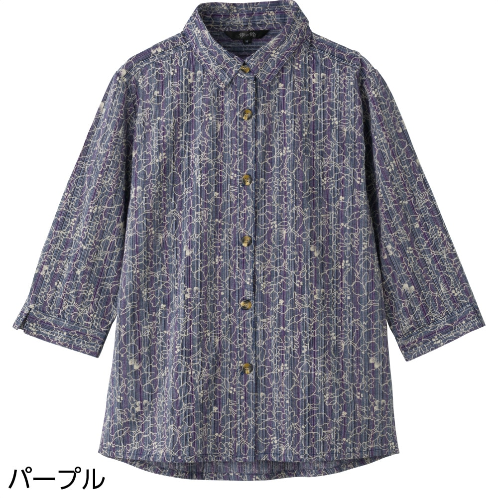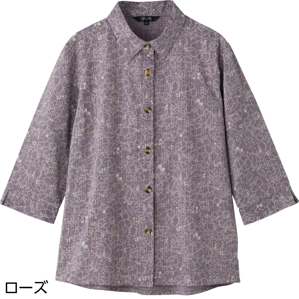 7分袖綿100%斜め釦ホールブラウス(婦人)