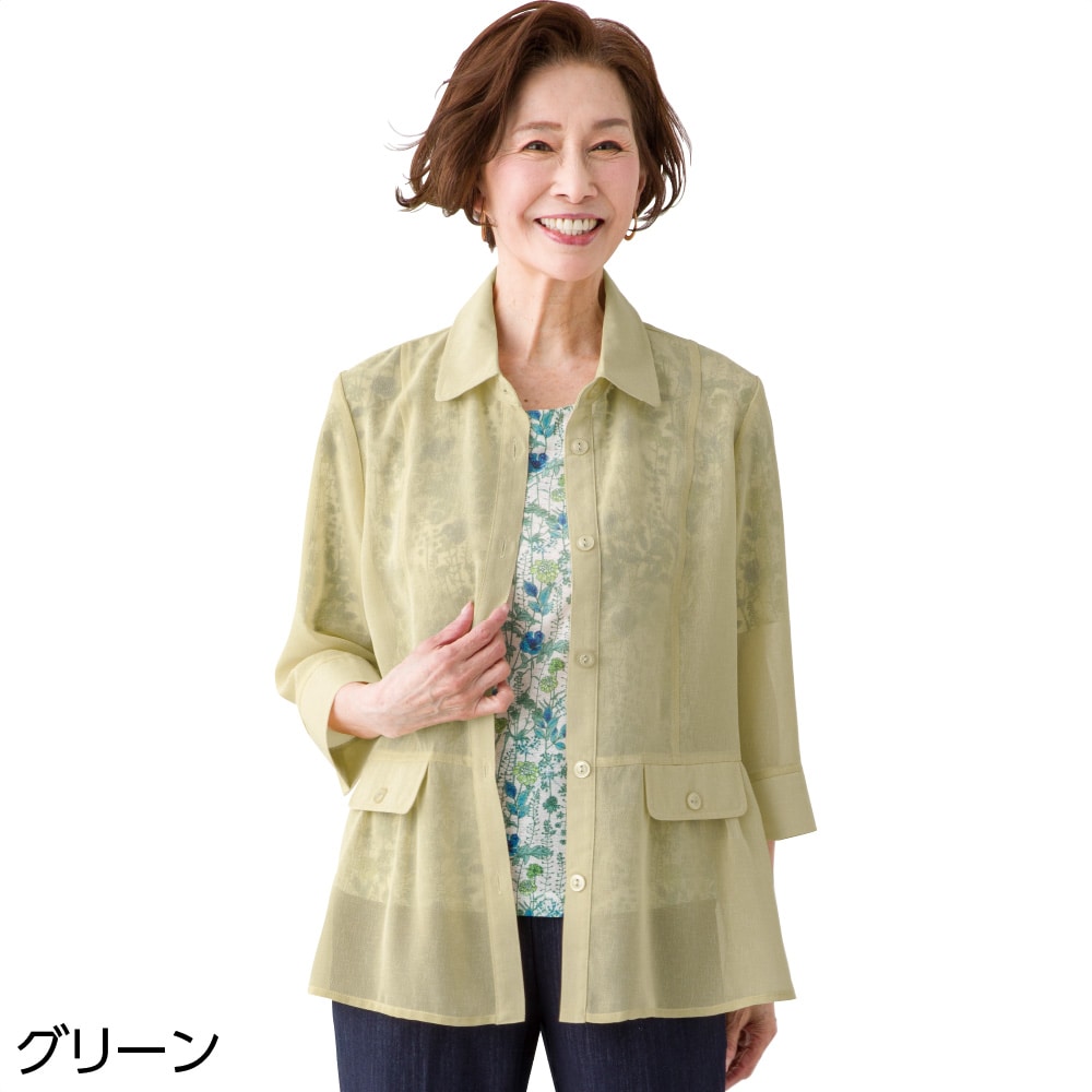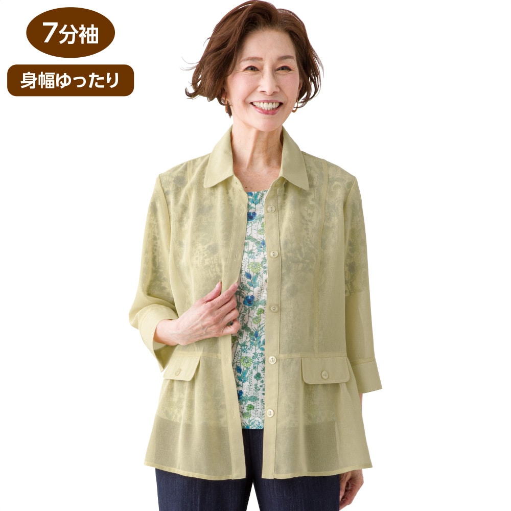 ケアファッションオンライン7分袖麻調衿付きアンサンブル(婦人) | ユニバーサルファッションと介護衣料の通販