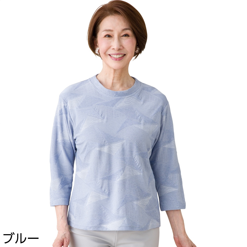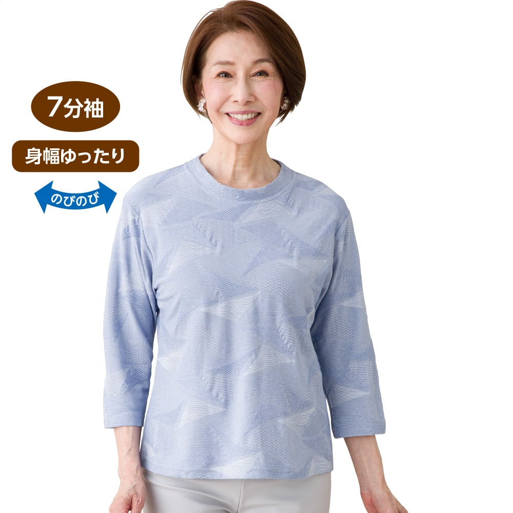 ケアファッションオンライン7分袖涼しやジャカードTシャツ(婦人) | ユニバーサルファッションと介護衣料の通販