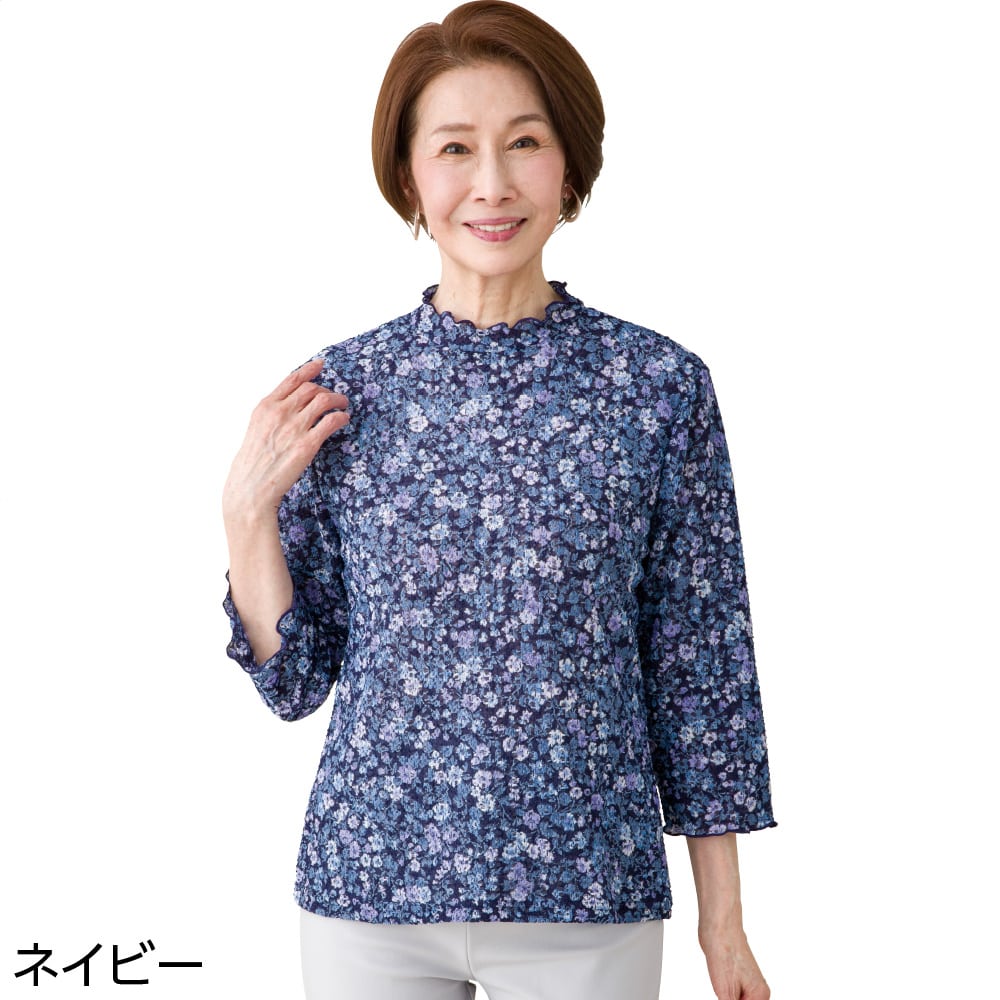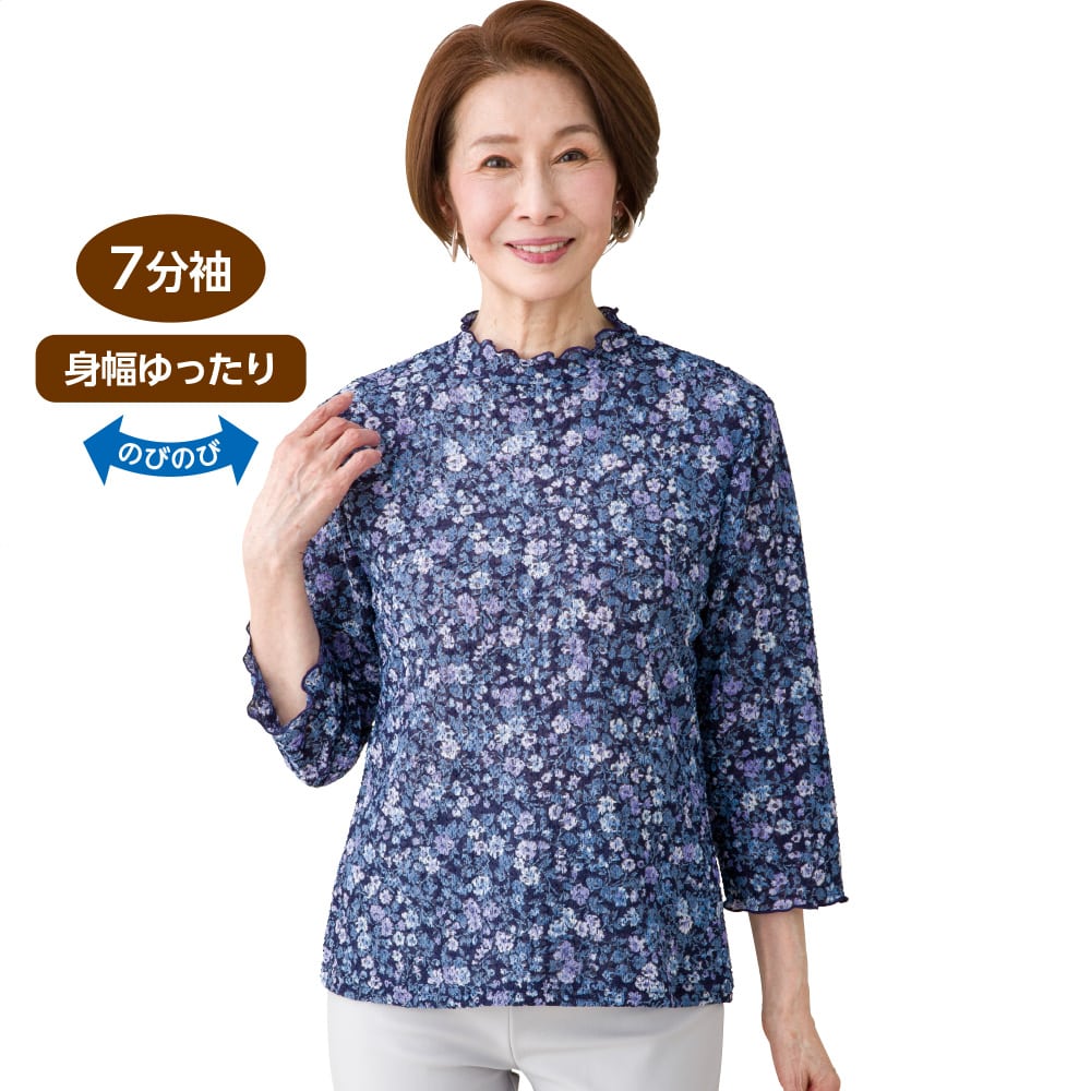 ケアファッションオンライン7分袖花柄京都プリントTシャツ(婦人) | ユニバーサルファッションと介護衣料の通販