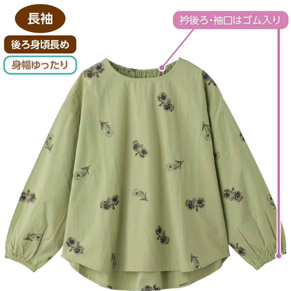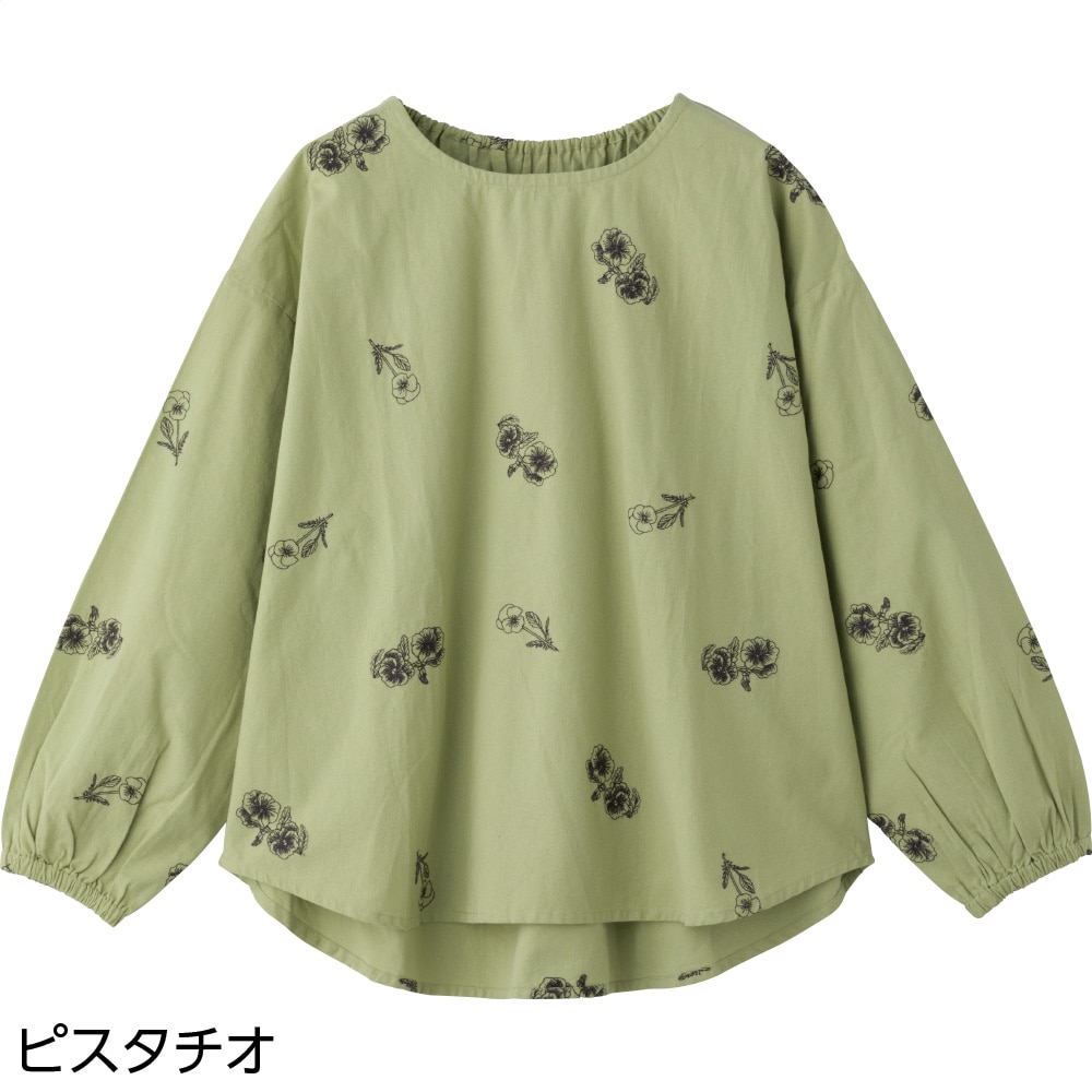 パンジー柄刺繍衿袖ゴムブラウス(婦人)