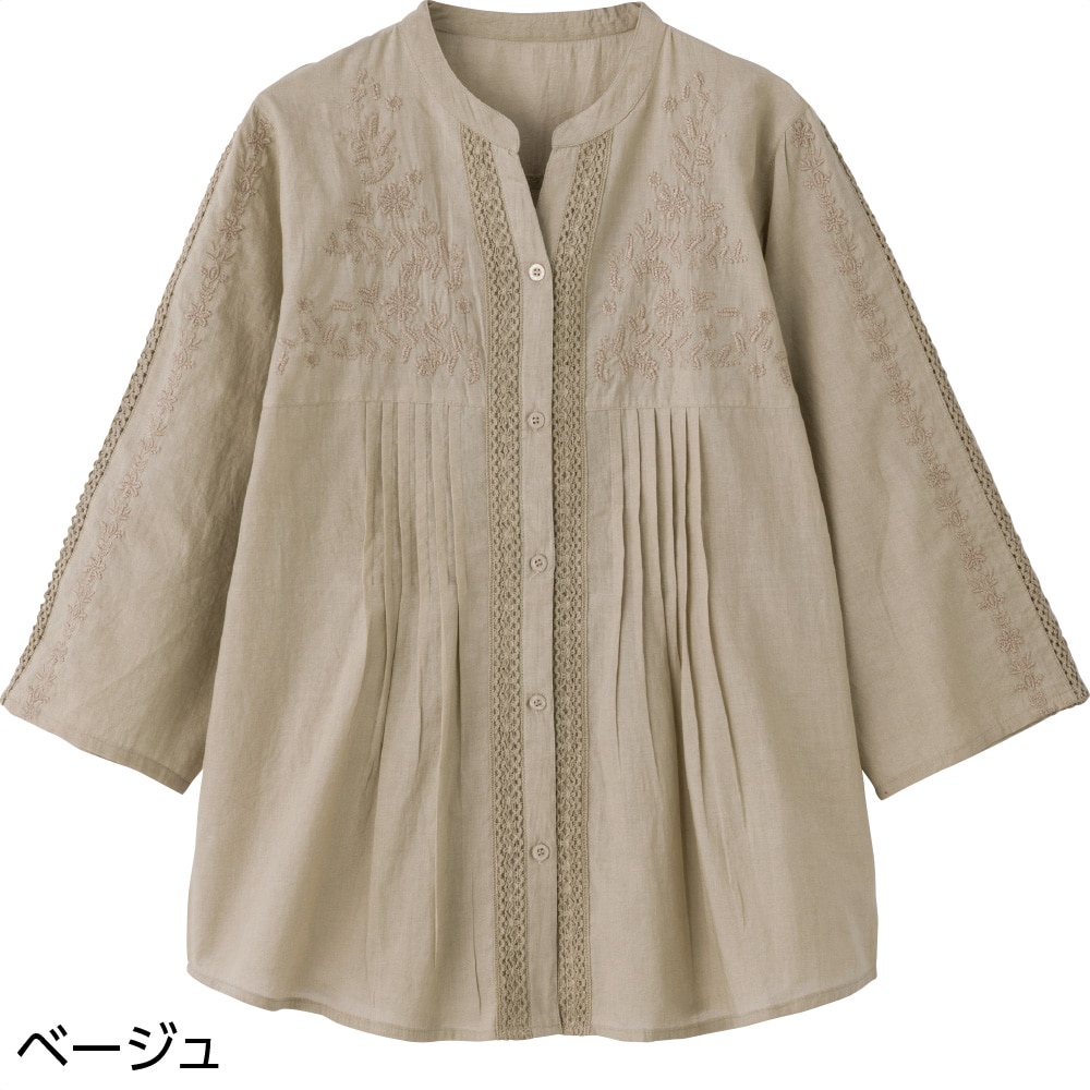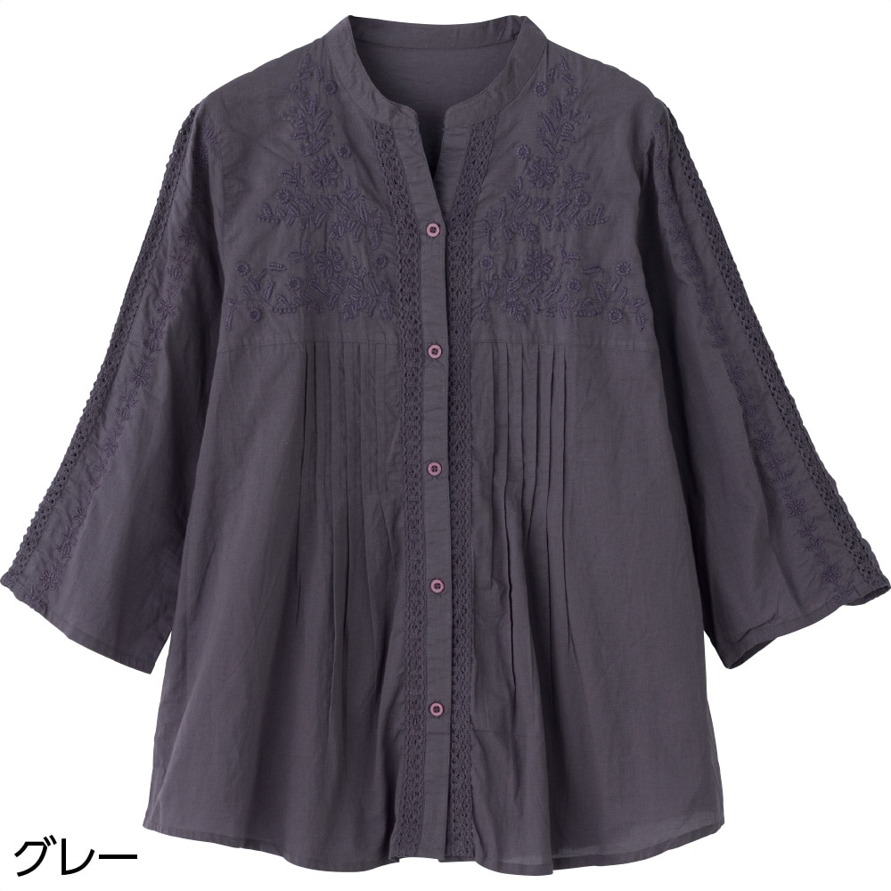 7分袖刺繍前開きブラウス(婦人)