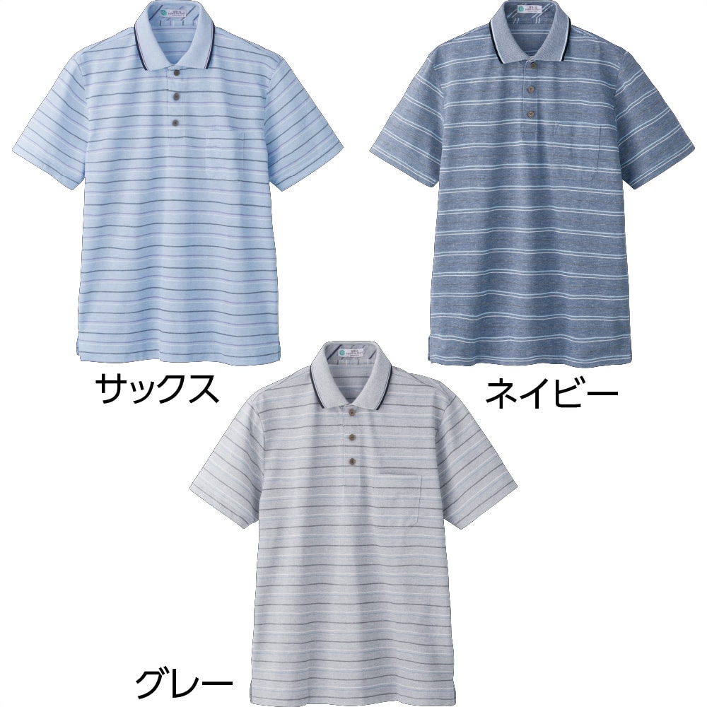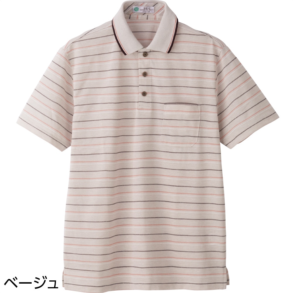 ケアファッションオンライン麻混スナップ釦半袖ポロシャツ(紳士) | ユニバーサルファッションと介護衣料の通販