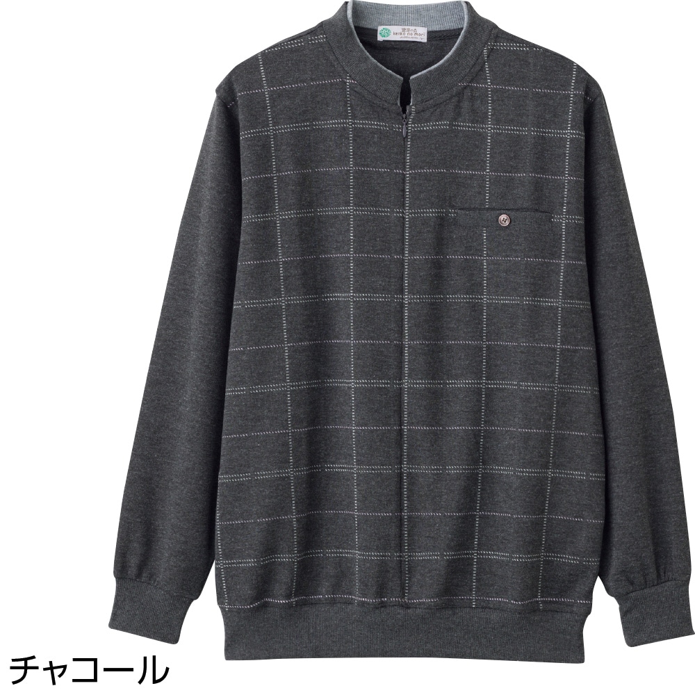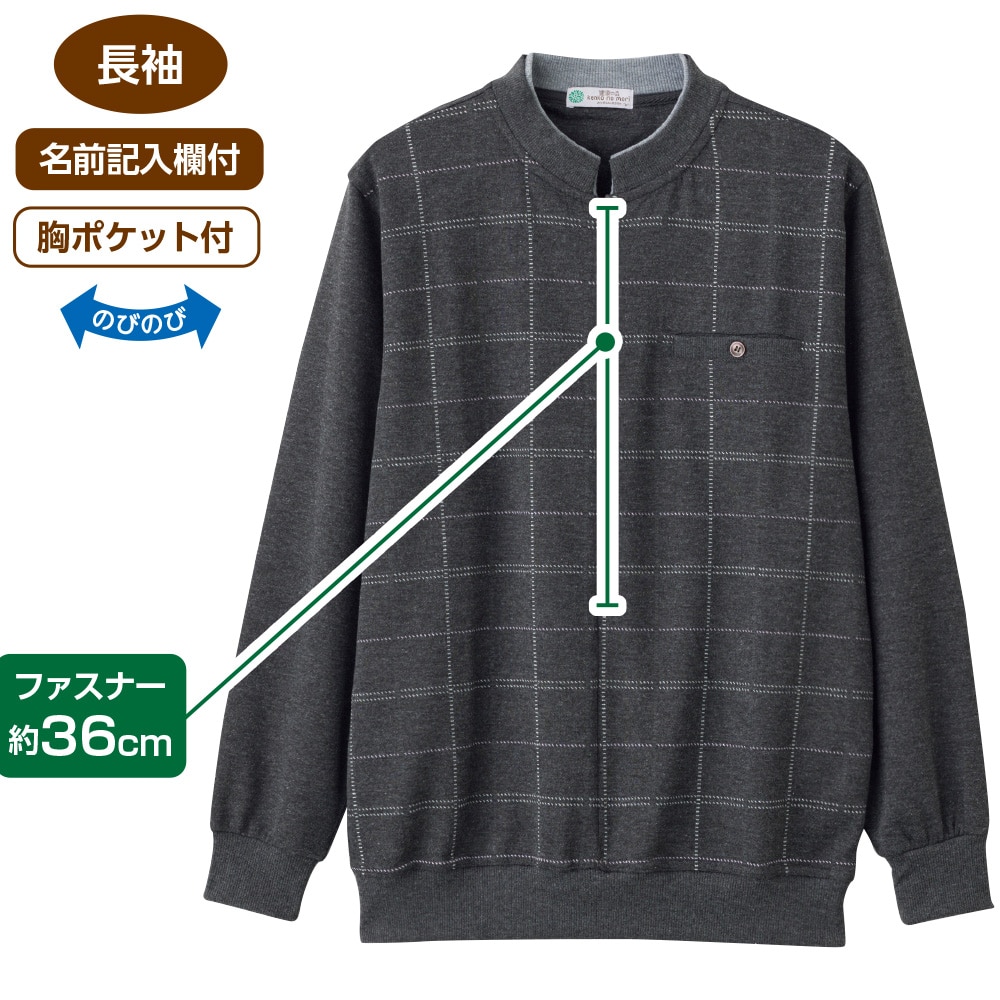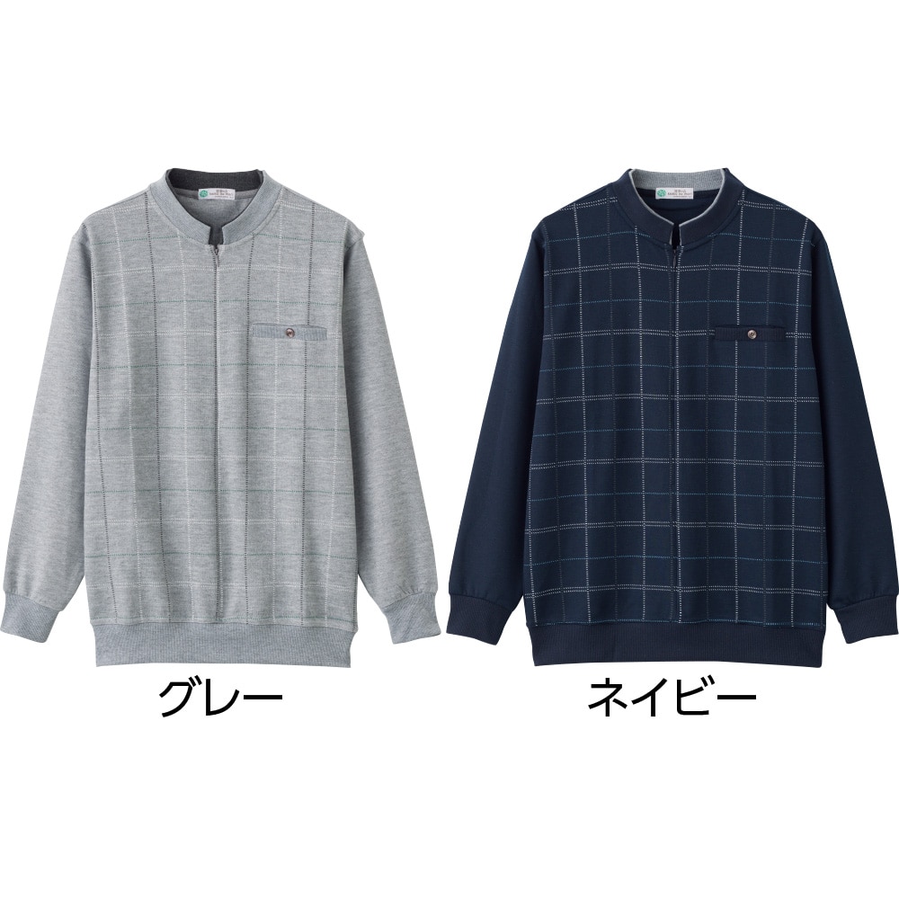 ケアファッションオンラインロングファスナー丸首トレーナー(紳士) | ユニバーサルファッションと介護衣料の通販