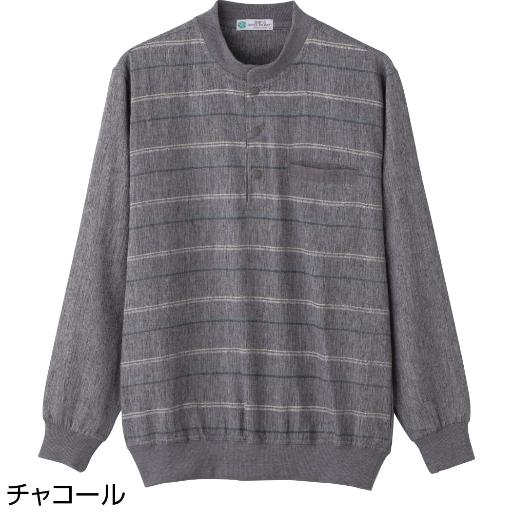 麻混楊柳スナップ釦ヘンリーネックトレーナー(紳士)