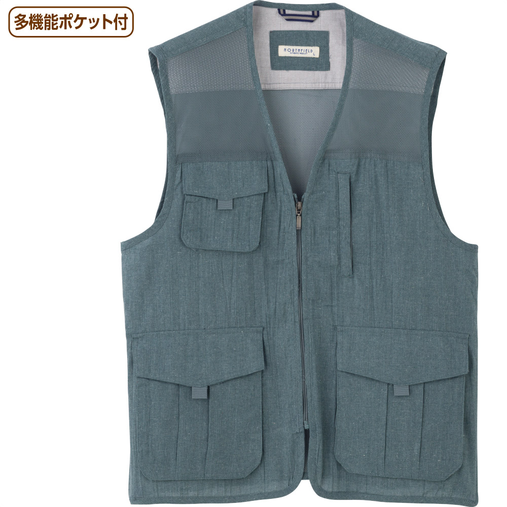麻混楊柳多機能ポケットベスト(紳士)