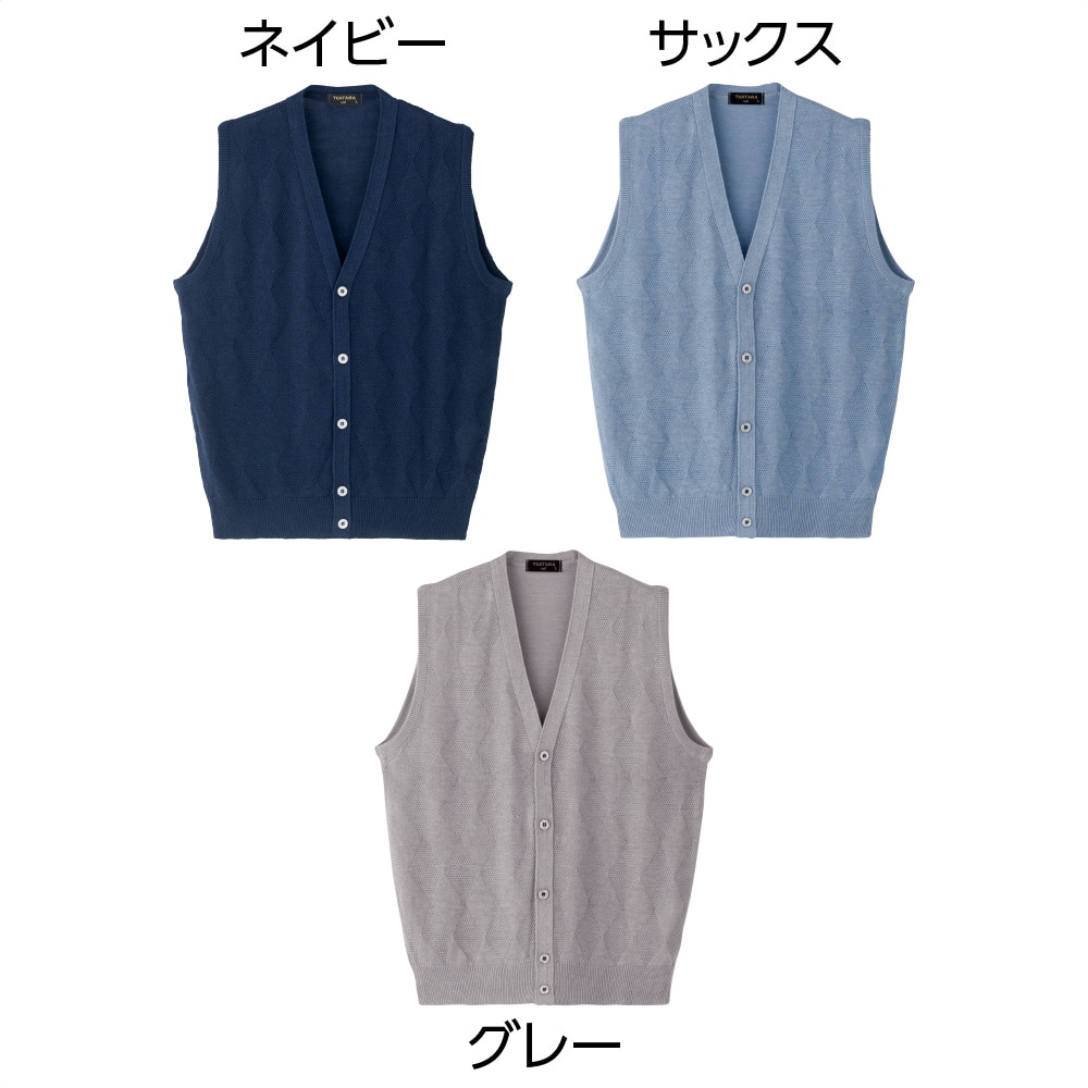 国産麻混ニット前開きベスト(紳士)