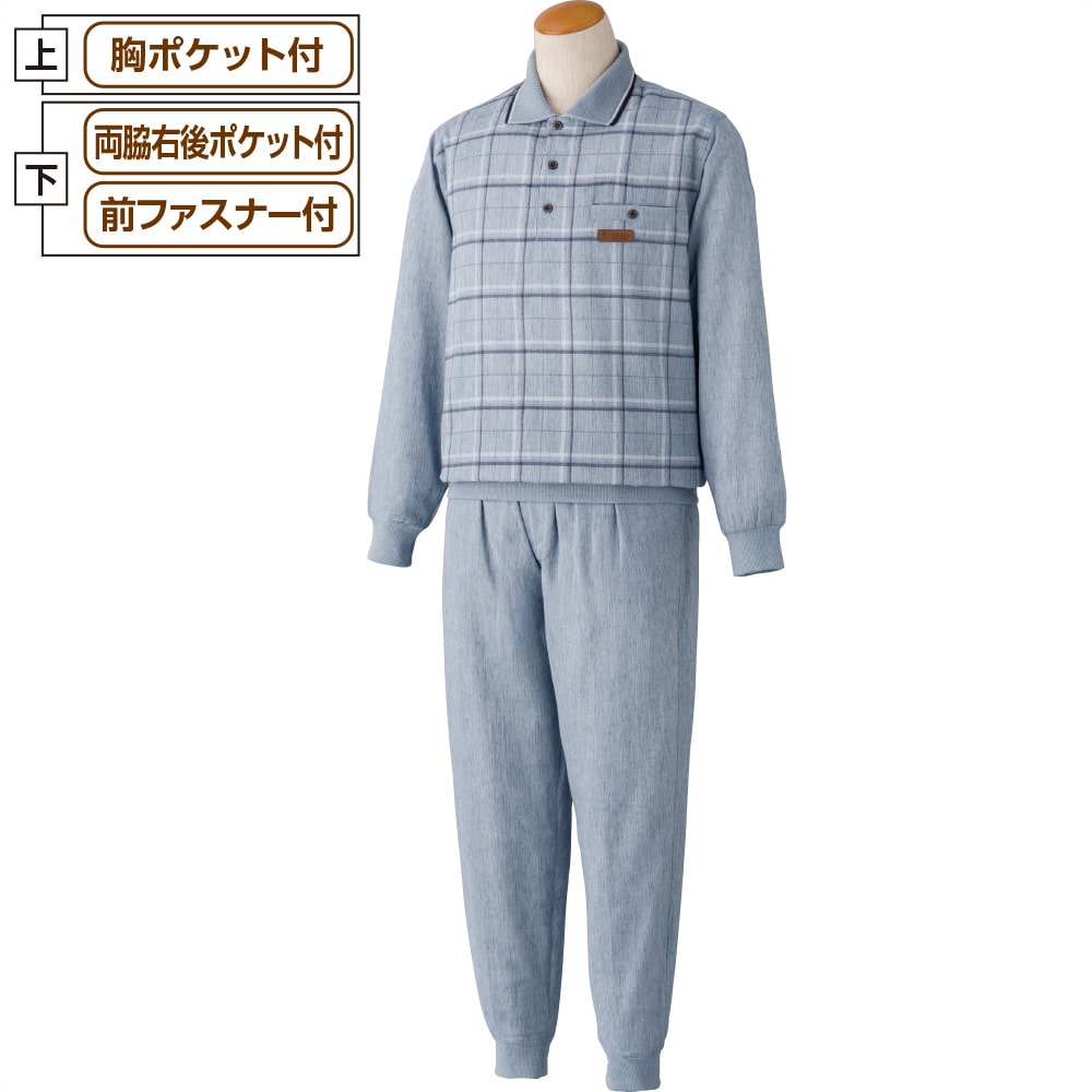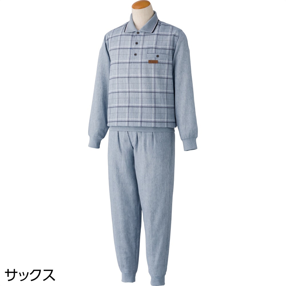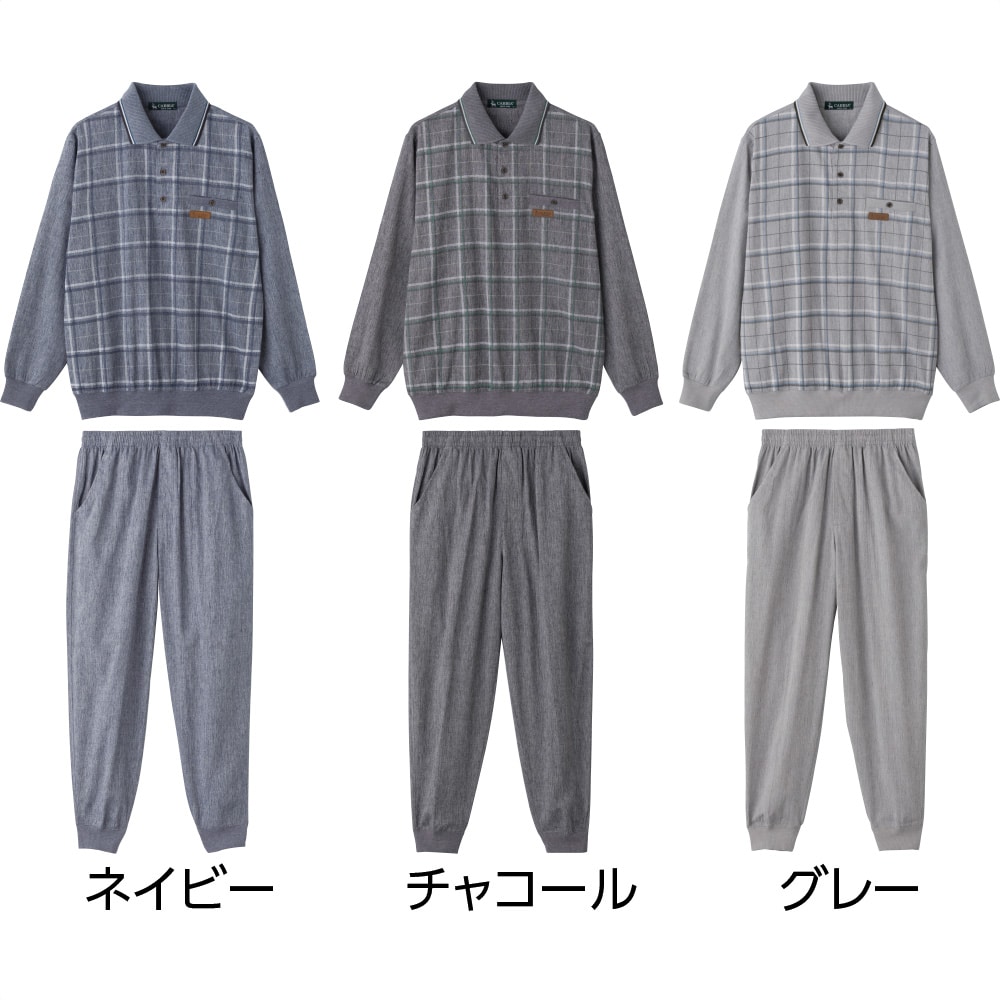 ケアファッションオンライン麻混楊柳ポロ衿上下スーツ(紳士) | ユニバーサルファッションと介護衣料の通販