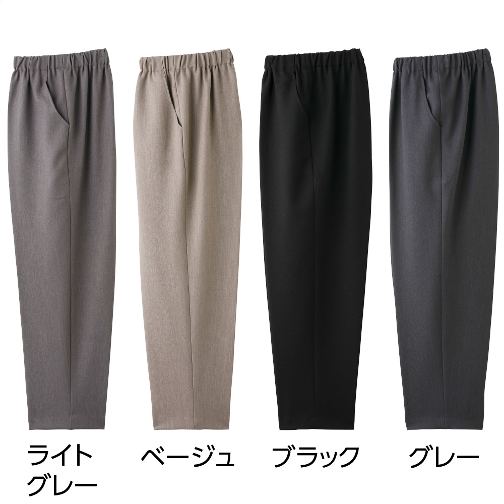 ◆ ゆったりと快適な履き心地 ◆腰深でしゃがんでも背中が見えず、ヒップ回りもゆったり。ゆったりと快適な履き心地ながら、センタープレス仕様できっちりとした印象に。【ゴム取替え口】ゴムの取替え口付きでウエストの調整が可能です。