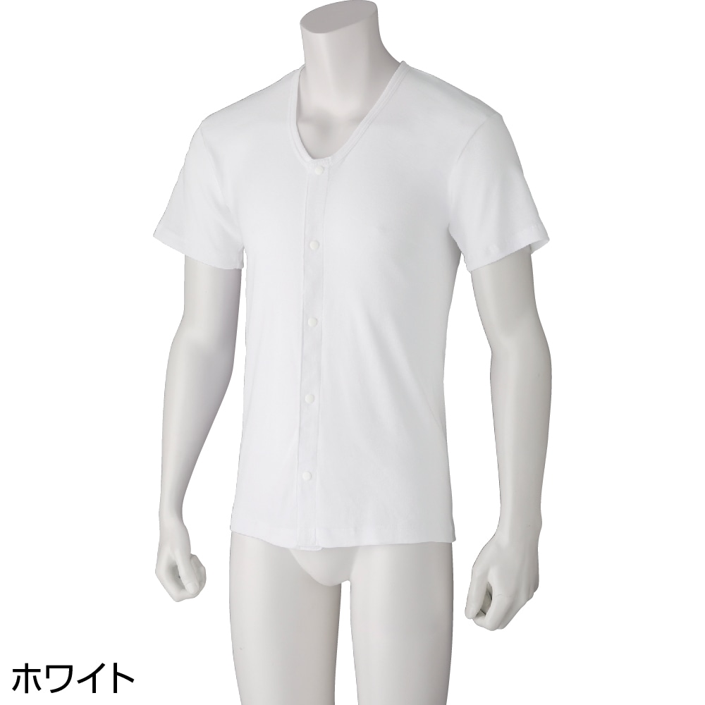 ◆ 着脱が素早くできるホック留め ◆着脱がすばやくできるホック留めの肌着です。肌に優しい綿100%素材を使用。【前立てすっきり仕様】●衿の位置で止めているので垂れ下がらない。●裏面を布で補強して伸びを防ぎます。●肌面が平らで痛くなりにくい。抗菌防臭、消臭機能付き。