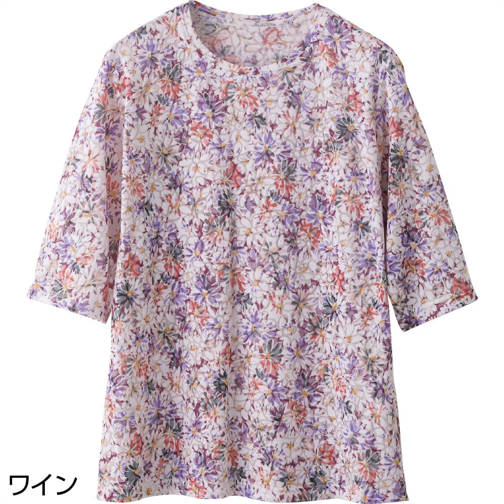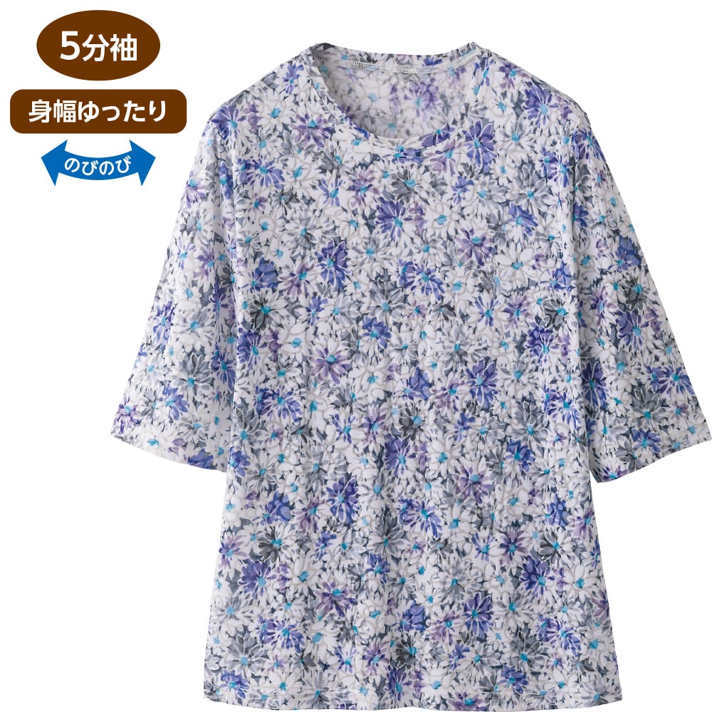 ケアファッションオンライン5分袖オパール花柄Tシャツ(婦人) | ユニバーサルファッションと介護衣料の通販
