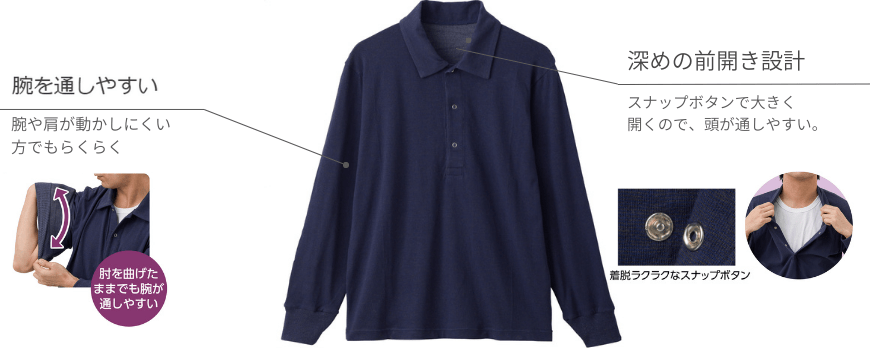 着心地が良く、衣服の脱ぎ着をサポートします。