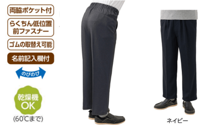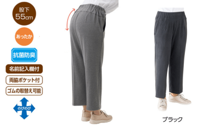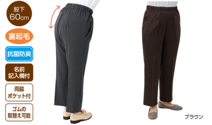 年間を通じて履ける、ベーシックなパンツです。 ウエストが総ゴム仕様なので、はき脱ぎもゆったりらくらく。