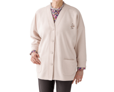 トレーナー素材を使ったゆったり着られるカーディガン。