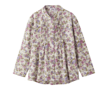 ふんわり微起毛斜め釦ホールピンタックブラウス
